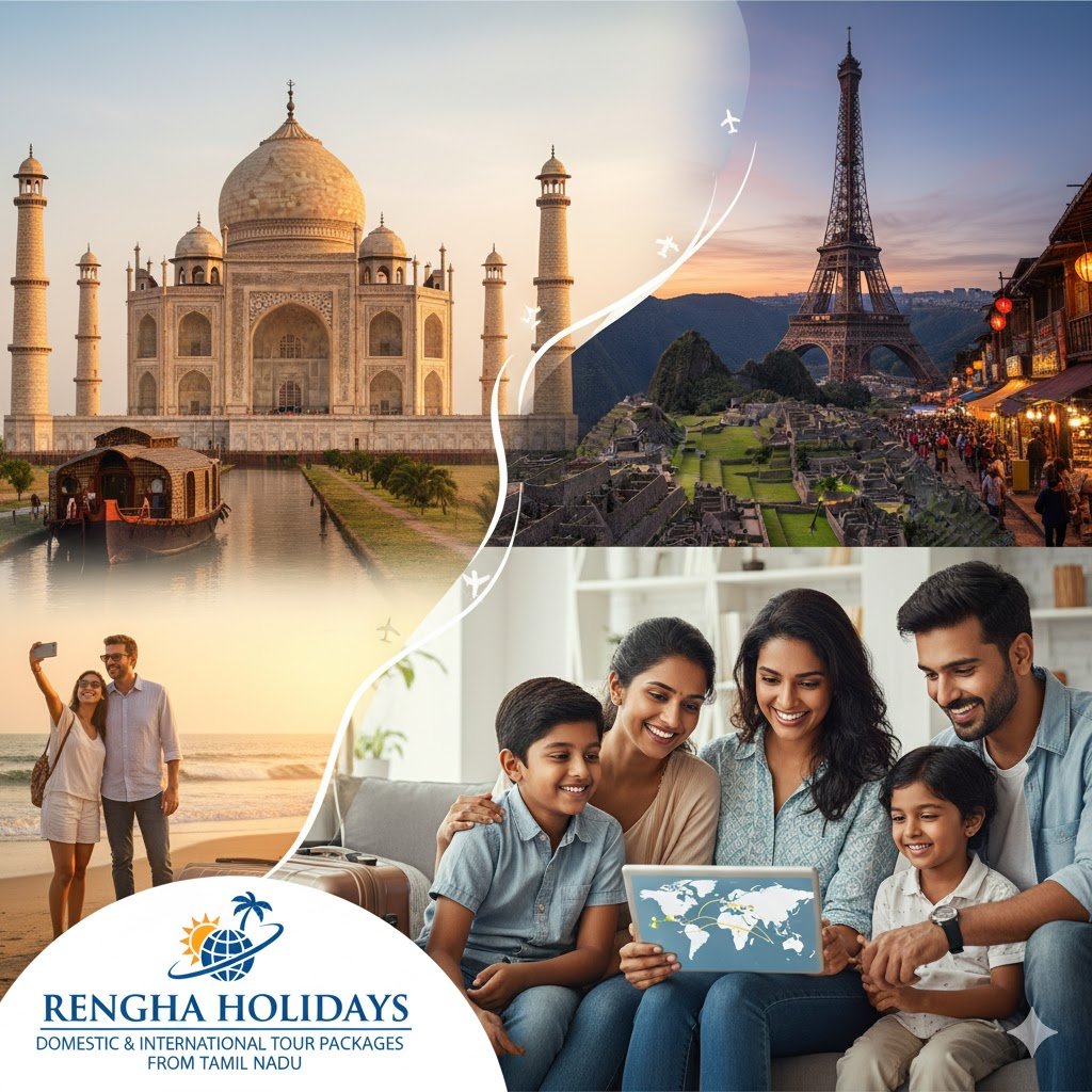 Are you based in Tamil Nadu and dreaming of exploring the breathtaking temples of India or venturing into the wonders of the world? Choosing the right travel partner is crucial for a smooth and memorable journey. Look no further than Rengha Holidays & Tourism Pvt. Ltd.—your premier, government-recognised partner for crafting unforgettable domestic and international tour packages from the heart of Tamil Nadu!